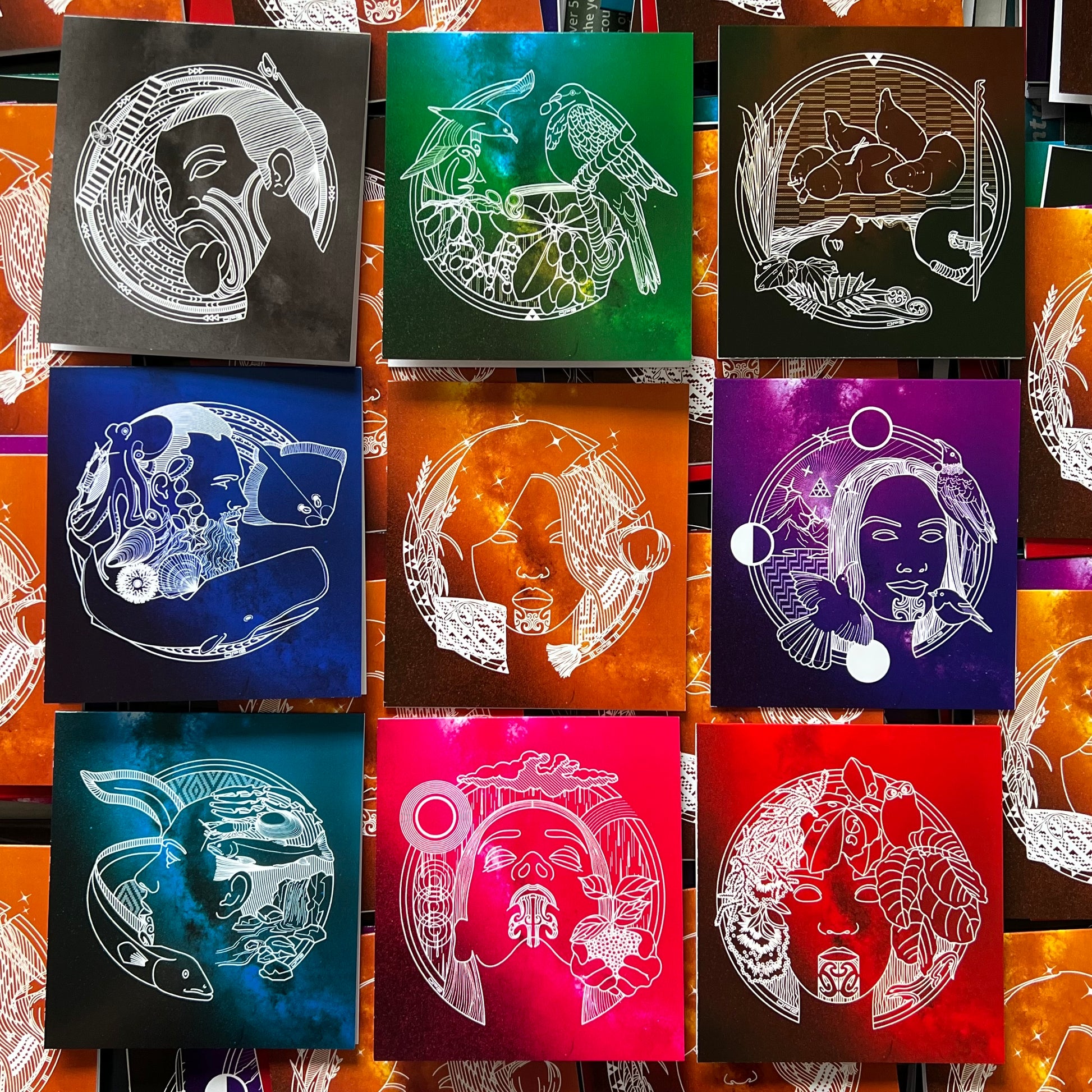 Our third release of kāri/cards celebrates Matariki. Comprising of 9 kāri - 1 for each whetū/star and 9 white kōpaki/envelopes - let's acknowledge Matariki together this year.